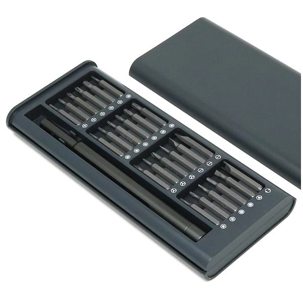 - Özellikler: * Ürün adı: 25 1 tornavida seti * Sap malzemesi: alüminyum * Bit malzemesi: çelik * Kasa malzemesi: plastik.