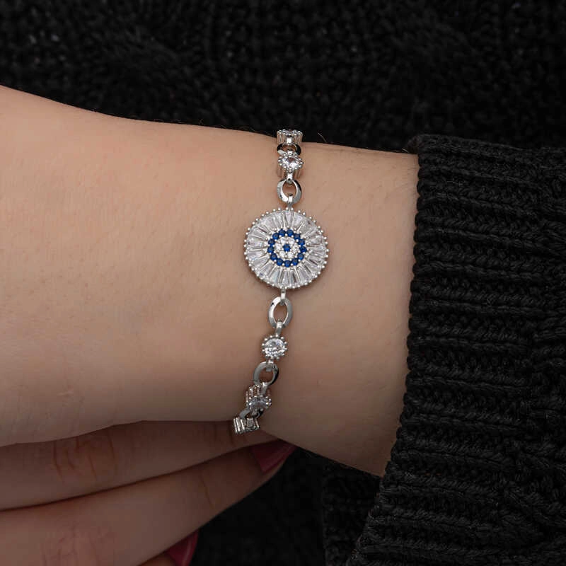 Gümüş Baget Taşlı Nazar Kadın Bileklik