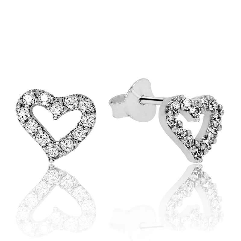 925 Ayar Gümüş Beyaz Kalpli Çivili Küpe