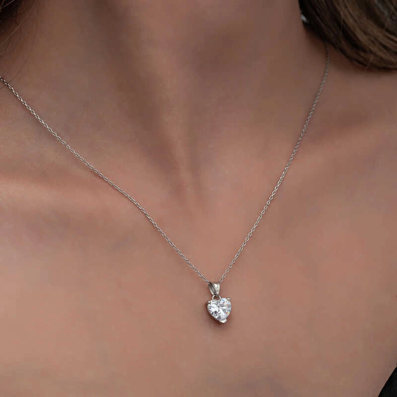 Gümüş Beyaz Taşlı Kalpli Kadın Kolye