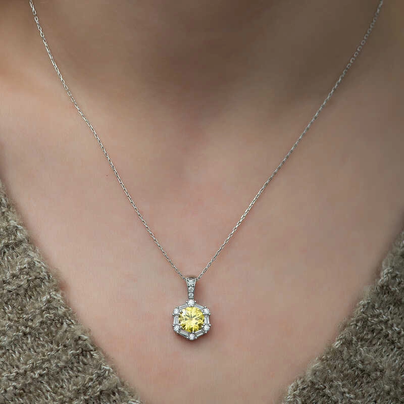 Gümüş Buğday Sarısı Baget Taşlı Kolye