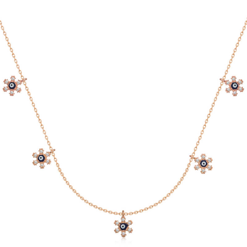 925 Ayar Gümüş Çiçek Nazarlı Şans Kadın Gümüş Kolye