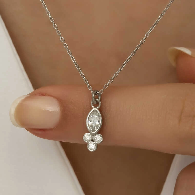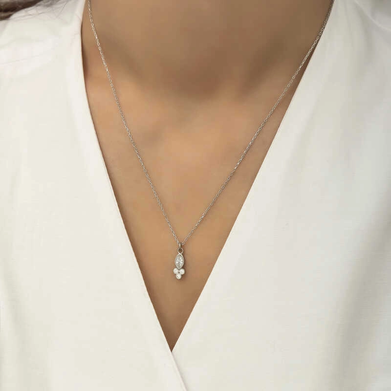 925 Ayar Gümüş Çiğ Damlası Mekik Tektaş Bayan Gümüş Kolye