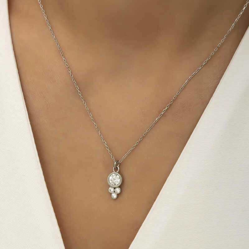 925 Ayar Gümüş Çiğ Damlası Yuvarlak Tektaş Bayan Gümüş Kolye