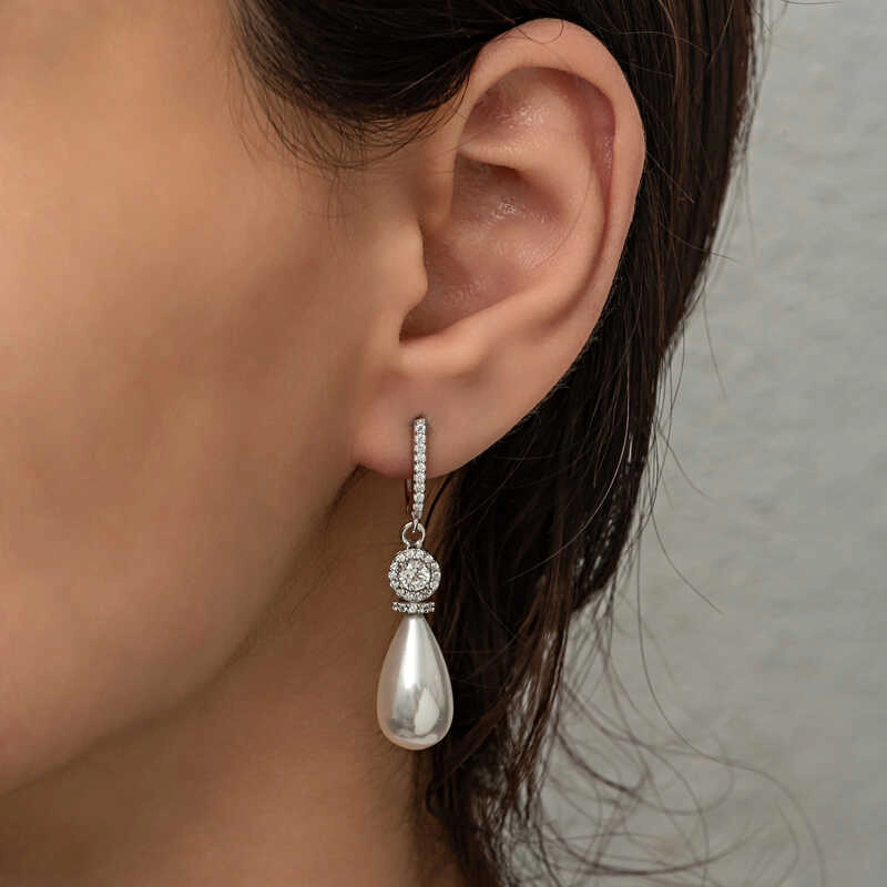 925 Ayar Gümüş Damla İnci Kadın Küpe