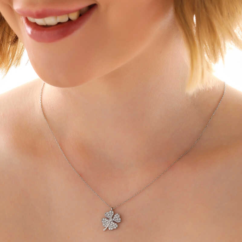 Gümüş Dört Yapraklı Yonca Kadın Kolye