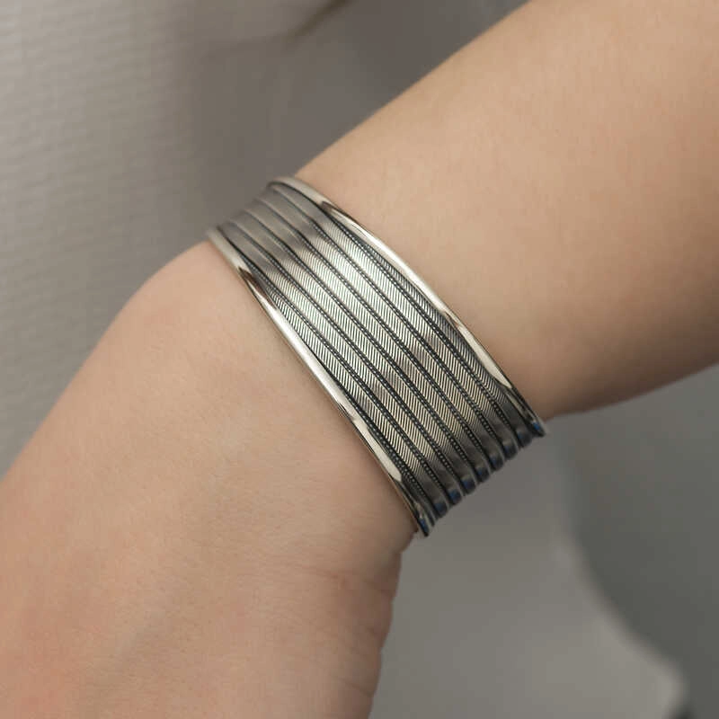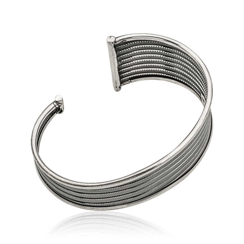 Gümüş Eskitme Desenli Bayan Bilezik