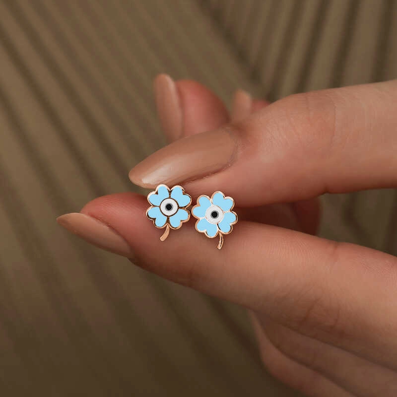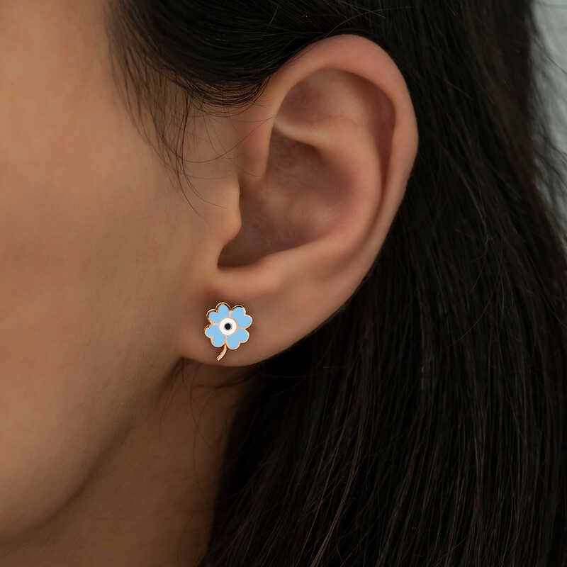 925 Ayar Gümüş Fosforlu Mavi Yonca Küpe