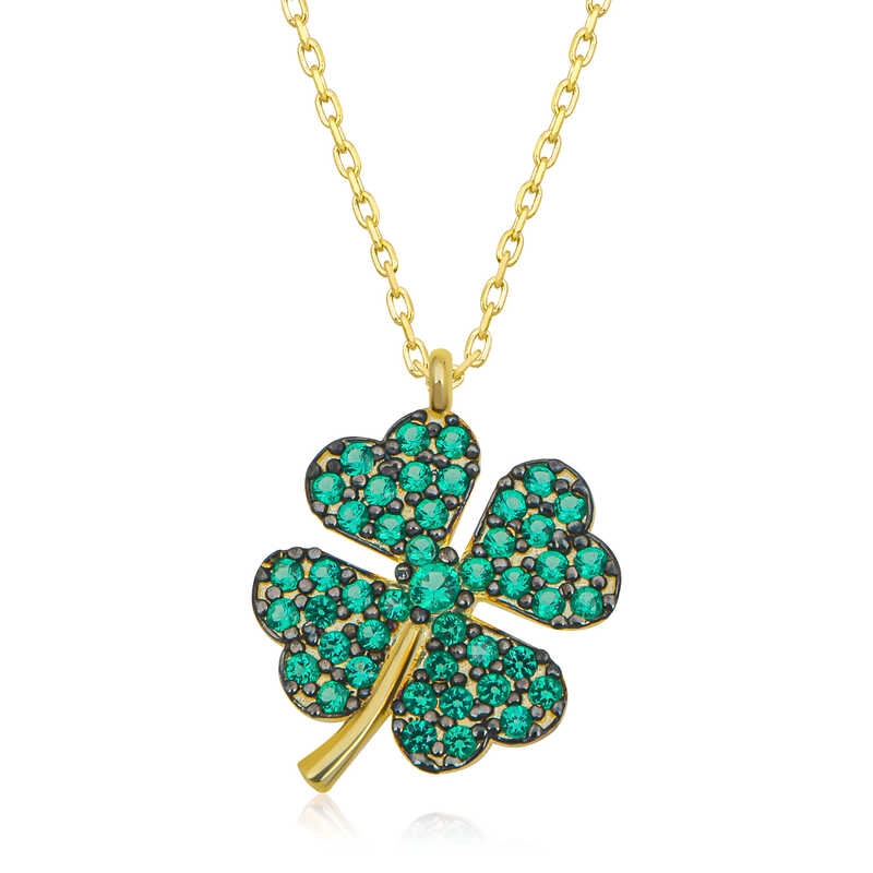 925 Ayar Gümüş Gold Dört Yapraklı Yonca Kadın Gümüş Kolye