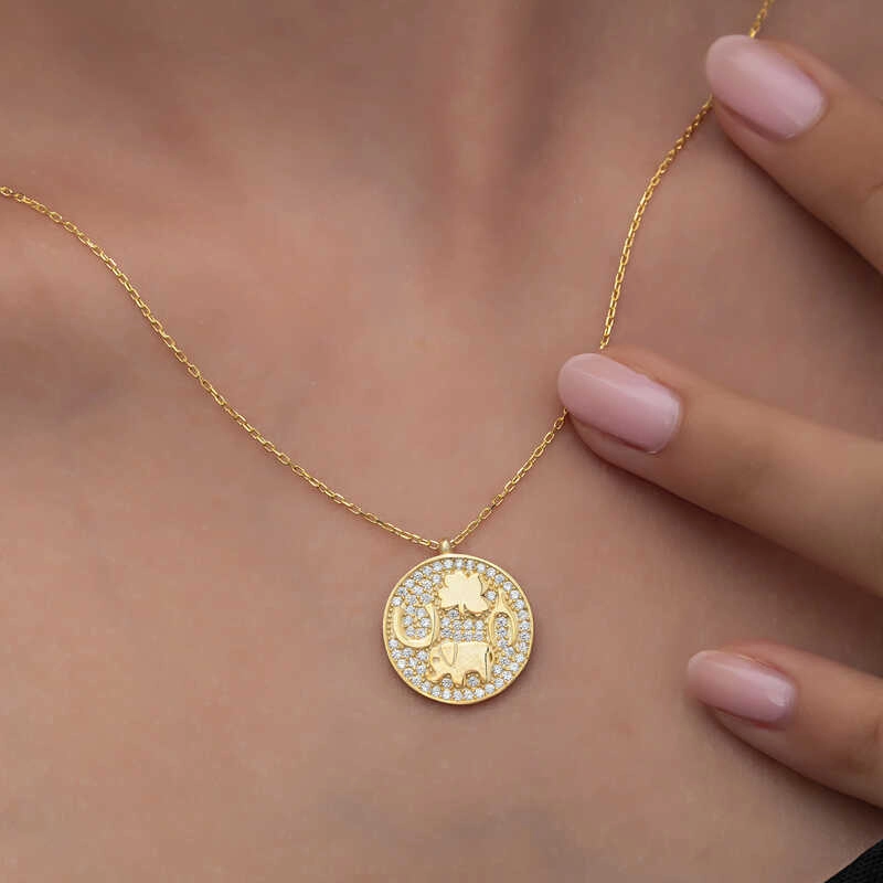 925 Ayar Gümüş Gold Fil Motifli Şans Kadın Kolye