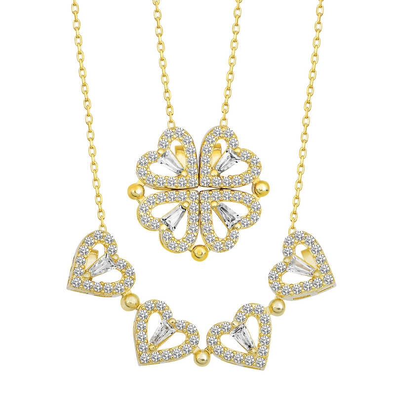 Gümüş Gold Kalpli Açılabilen Yonca Kadın Kolye