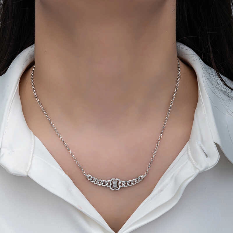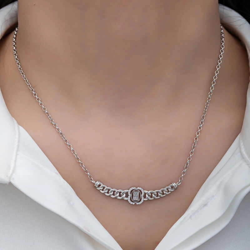 925 Ayar Gümüş Gurmet Zincirli Baget Taşlı Kadın Kolye