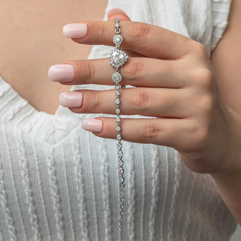 Zarif ve sade aksesuarlardan hoşlanan kadınların ilk tercihleri arasında bulunan su yolu bilekliklere, farklı tasarımlarla sahip olabilirsiniz. İnce ve titiz bir işçilikle tasarlanan su yolu bileklikleri dilediğiniz her ortamda tarzınızı bütünlemek için kullanabilirsiniz. Kıyafetlerinize ışıltı katmak ve bileğinizin zerafetini artırmak üzere su yolu bileklikleri tercih edebilirsiniz. Sade bir stile sahipseniz su yolu bilekliklerle kombinlerinize yumuşak ışıltılar kazandırabilirsiniz. Sevdikleriniz için romantik ve anlamlı bir hediye arıyorsanız bu su yolu bileklikler ideal bir seçim olabilir. Her dönem sevilen bu sade ve şık bilekliği; doğum günü hediyesi, sevgililer günü hediyesi veya annelere hediye olarak özel günlerde tercih edebilirsiniz. Gümüş kalpli su yolu kadın bileklik, 925 ayar gümüşten imal edilmiştir. Gümüş bileklik üzerine rodyum kaplama yapılmıştır. Rodyum kaplama yapılan kadın bileklikler parlaklığını uzun süre muhafaza eder, oksitlenmesini geciktirir. Tüm gümüş kadın bileklik modellerinde olduğu gibi bu gümüş su yolu kadın bileklik de tamamı el emeği ile üretilmiştir. Gümüş ve değerli taşlar nedeniyle belirtilen ortalama ürün ağırlığında ± %10 sapma olabilmektedir.