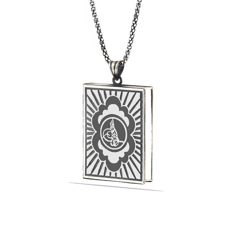925 Ayar Gümüş Kare İçi Açılabilen Tuğra Muskalık Gümüş Kolye