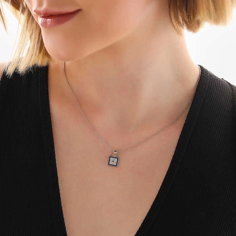 925 Ayar Gümüş Kare Nazar Kadın Kolye