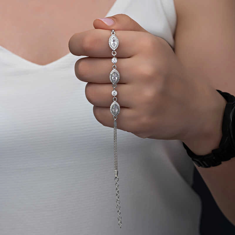 925 Ayar Gümüş Mekik Zirkon Taşlı Kadın Bileklik