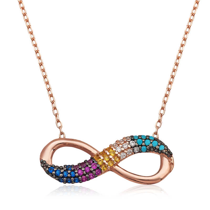 Sonsuz bağlılık, sonsuz sevgi, sonsuz güven, sonsuza kadar sürecek aşkı anlatmanın en güzel yollarından biri sonsuzluk sembolüdür. Sevgilinize hediye edeceğiniz bu özel kolye ile ona olan sonsuz aşkınızı sevginizi ifade edebilir sonsuza kadar birlikte olacağınız mesajı verebilirsiniz. Melek kanadı sonsuzluk bayan kolye 925 ayar gümüşten imal edilmiştir. Gümüş üzerine rose kaplama yapılmıştır. Rose kaplama yapılan gümüş bayan kolye modelleri parlaklığını uzun süre muhafaza eder ve oksitlenmesi gecikir. Kolye üzerinde bulunan taşlar zirkondur. Gümüş olan zincir boyu ortalama 45 cm'dir. Tüm gümüş bayan kolye modellerinde olduğu gibi gümüş melek kanadı sonsuzluk bayan kolye de el emeği ile üretilmiştir. Gümüş ve değerli taşlar nedeniyle belirtilen ürün ağırlığında ± %10 sapma olabilmektedir.