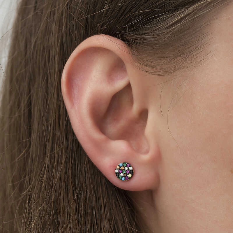 925 Ayar Gümüş Mix Taşlı Daire Küpe