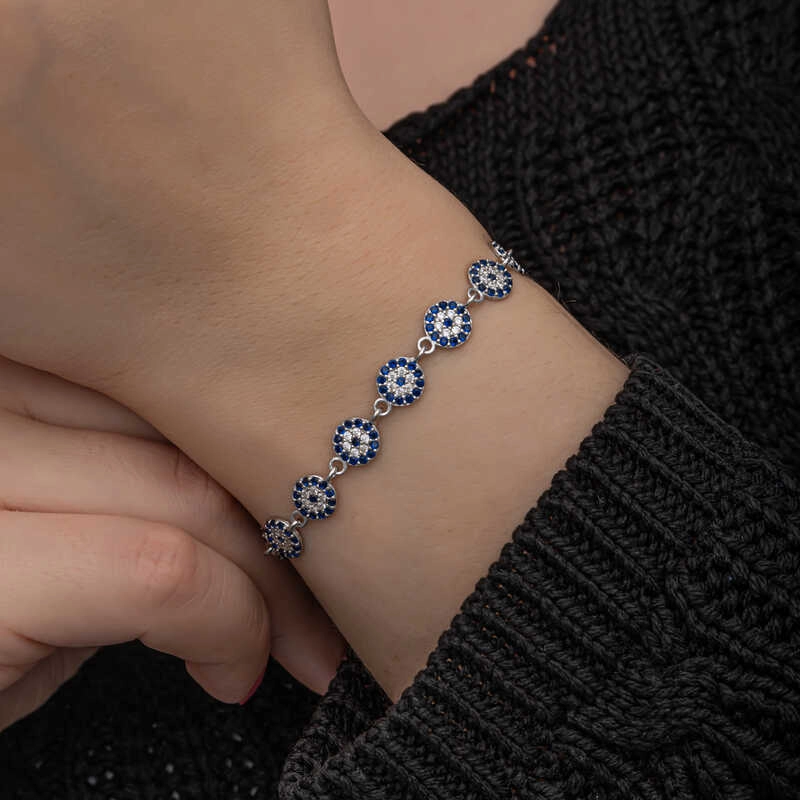 925 Ayar Gümüş Nazar Boncuklu Kadın Bileklik