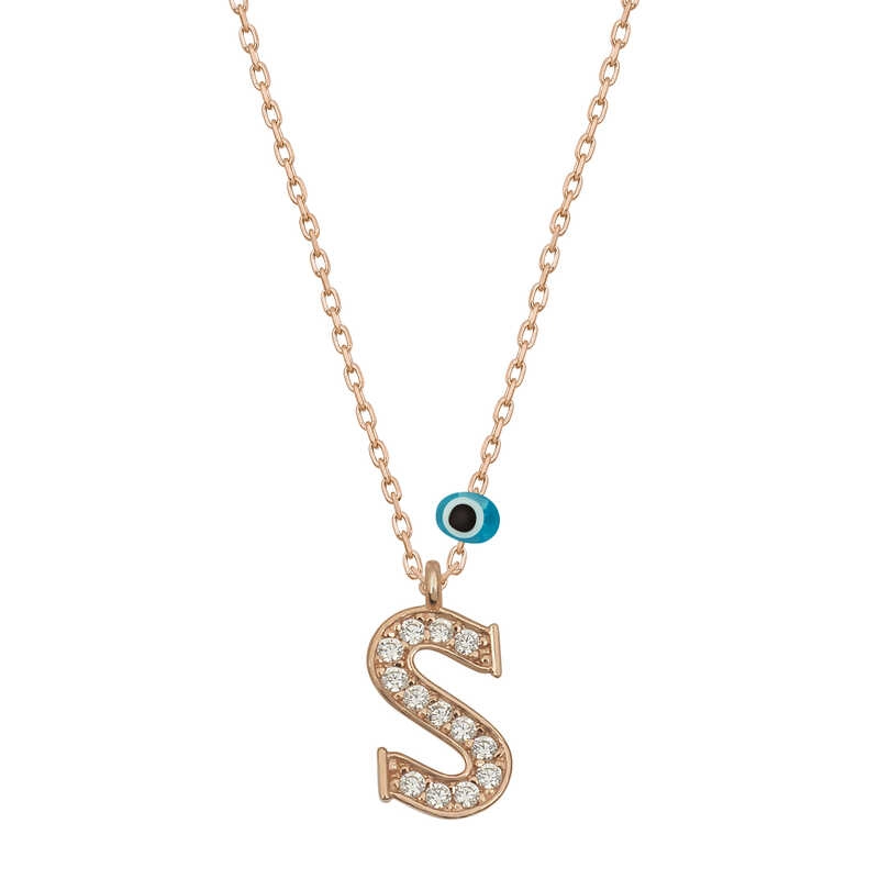 925 Ayar Gümüş Nazar Rose S Harfi Kadın Gümüş Kolye