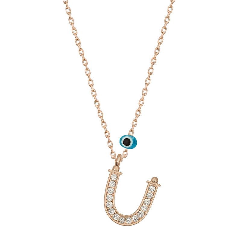 925 Ayar Gümüş Nazar Rose Ü Harfi Kadın Gümüş Kolye