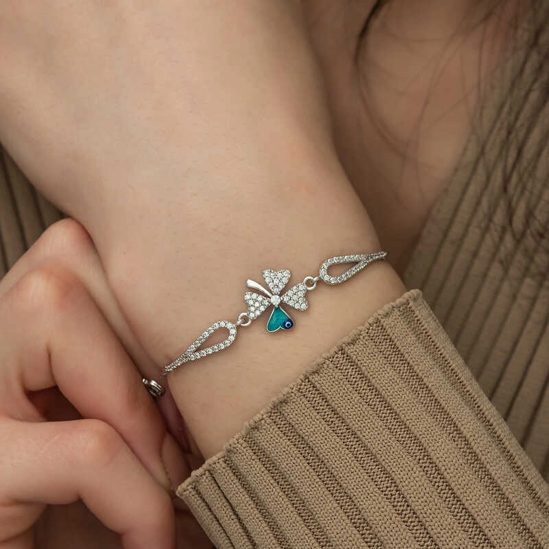 925 Ayar Gümüş Nazarlı Yonca Bileklik