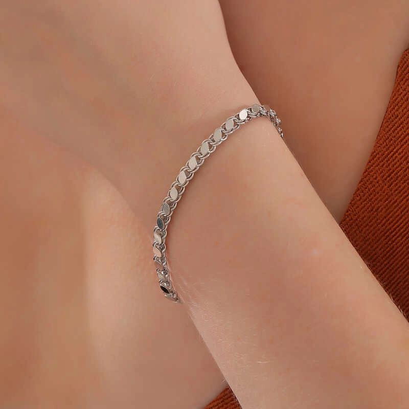 925 Ayar Gümüş Pullu Zincir Kadın Bileklik