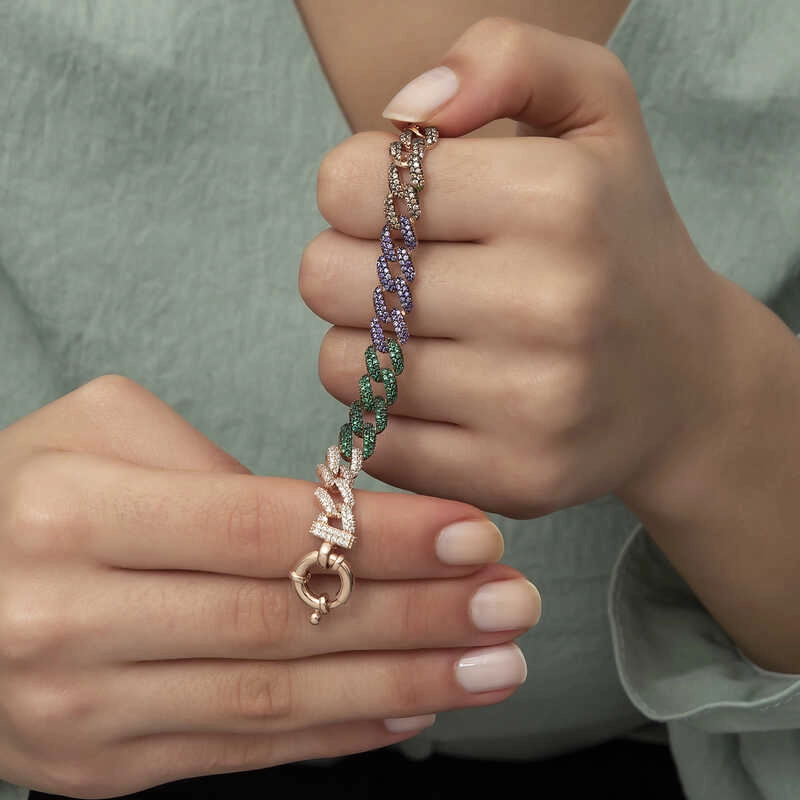 925 Ayar Gümüş Renkli Taşlı Gurmet Bileklik