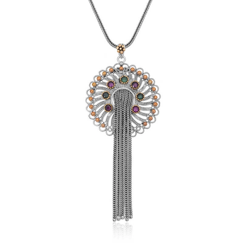 Gümüş Telkari Yakut Zümrüt Renkli Taşlı Kadın kolye