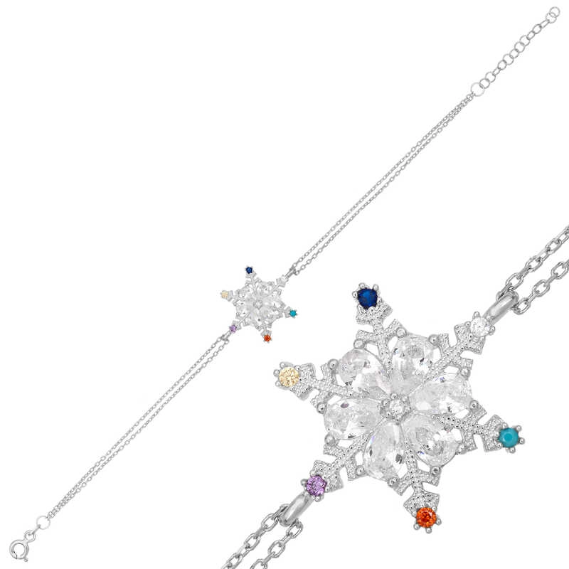 925 Ayar Gümüş Renkli Taşlı Kar Tanesi Kadın Bileklik