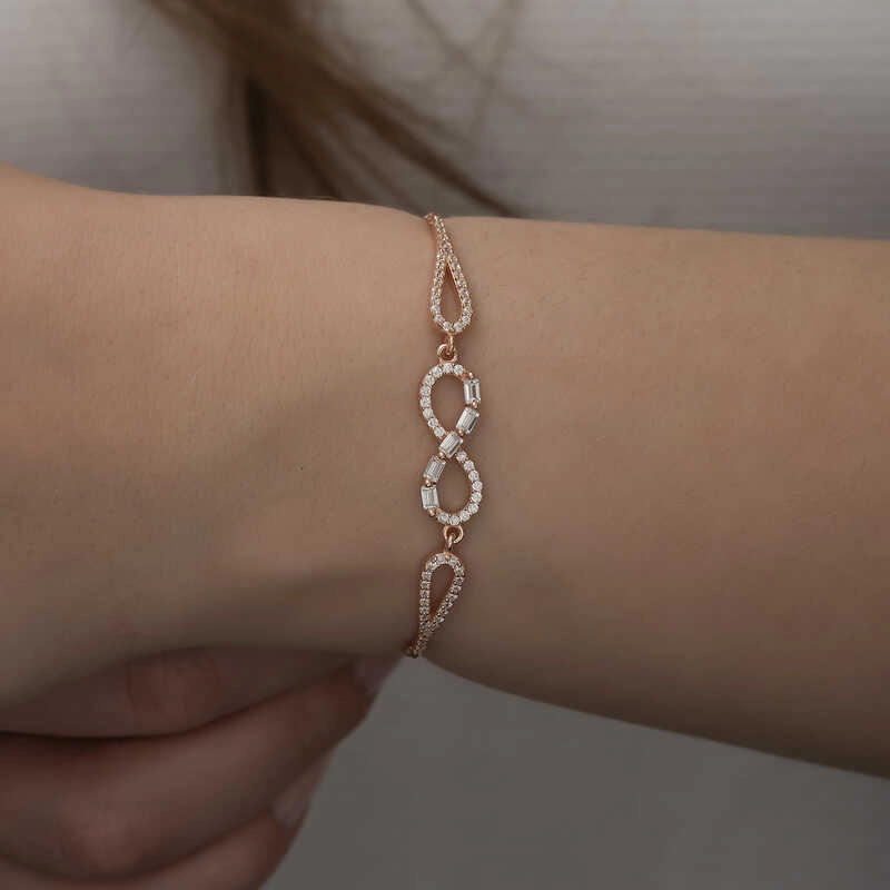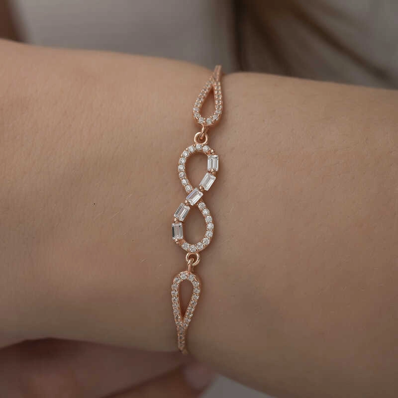925 Ayar Gümüş Rose Baget Taşlı Sonsuzluk Bileklik