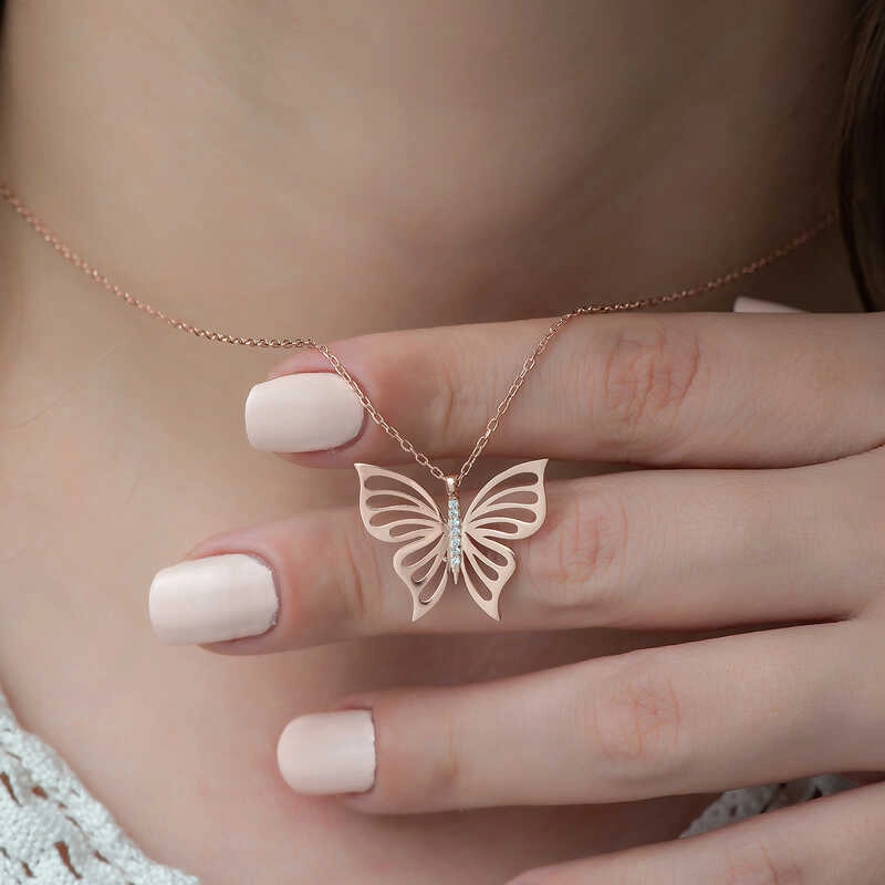 925 Ayar Gümüş Rose Bahar Kelebeği Kadın Gümüş Kolye