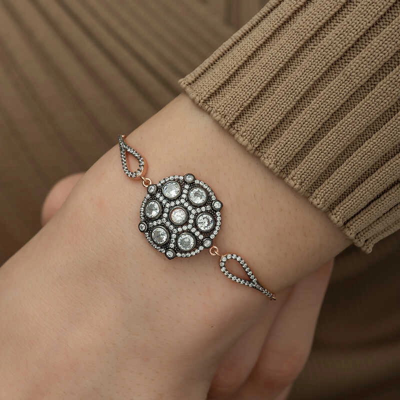 925 Ayar Gümüş Rose Elmas Montür Bileklik