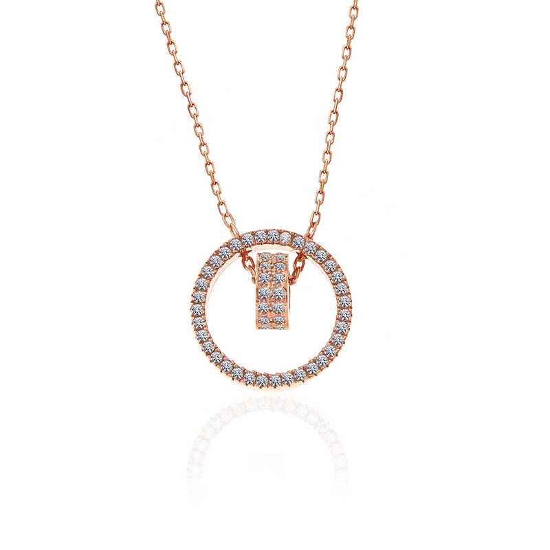925 Ayar Gümüş Rose İç İçe Geçmiş Halka Kadın Kolye
