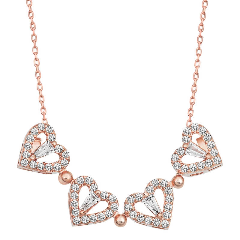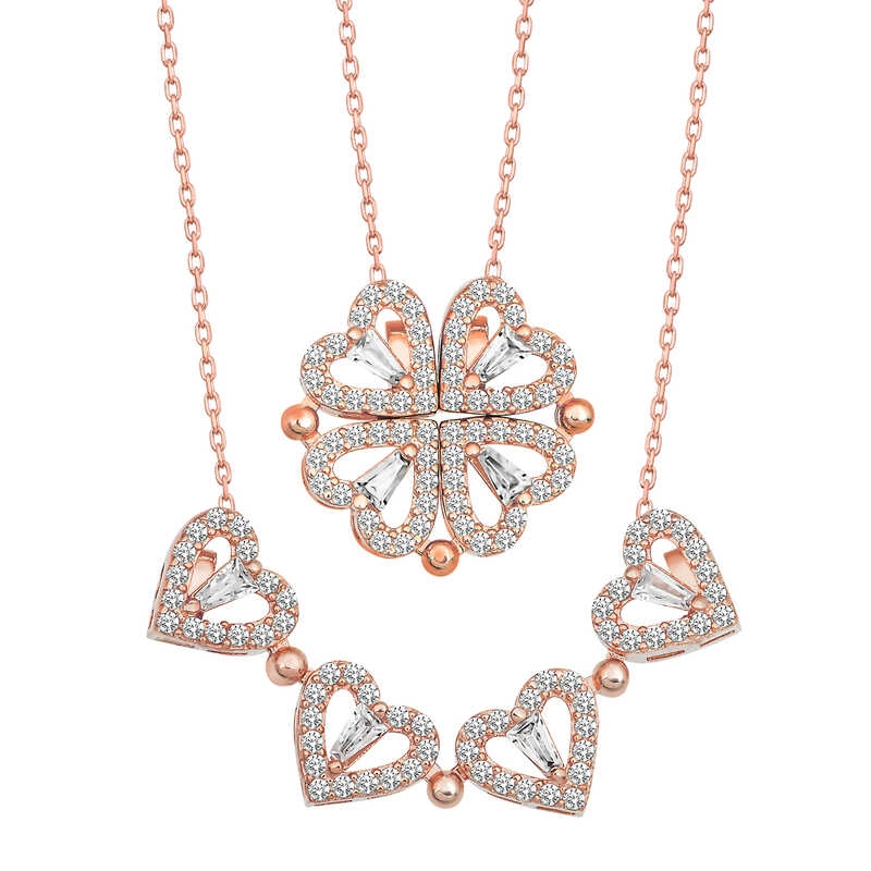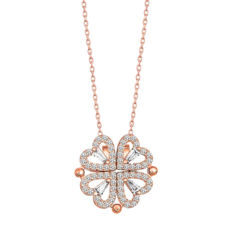 925 Ayar Gümüş Rose Kalpli Açılabilen Yonca Kadın Gümüş Kolye