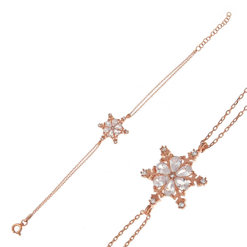 Kadınların ışıltısı, berraklığı kar tanesine benzetilmektedir. Kar çiçeği de sevdiğiniz kişiyi sembolize etmektedir. Kar tanelerinin her birinin kadınlar gibi eşsiz ve ayrı kıymette olması onları özel kılan bir diğer özelliktir. Kar tanesinin asilliği her dönemde dikkat çekmeyi başarmıştır. Bunun yanında insanların tıpkı kar taneleri gibi birbirlerine zarar vermeden de mutlu bir şekilde yaşayabileceklerini sembolize etmektedir. Bu şık ve anlamlı bileklik; doğum günü hediyesi, sevgililer günü hediyesi veya annelere hediye olarak özel günlerde tercih edilebilecek mükemmel bir seçenektir. Bileklik, 925 ayar gümüşten imal edilmiştir. Gümüş üzerine rose kaplama yapılmıştır. Rose kaplama yapılan ürünler parlaklığını uzun süre muhafaza eder ve ürünün oksitlenmesi gecikir. Tüm gümüş kadın bilekliklerde olduğu gibi bu gümüş kar çiçeği kadın bileklik de tamamı el emeği ile üretilmiştir. Gümüş ve değerli taşlar nedeniyle belirtilen ortalama ürün ağırlığında ± %10 sapma olabilmektedir.