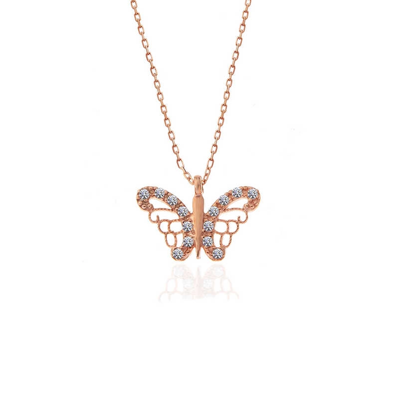 925 Ayar Gümüş Rose Kelebek Kadın Gümüş Kolye