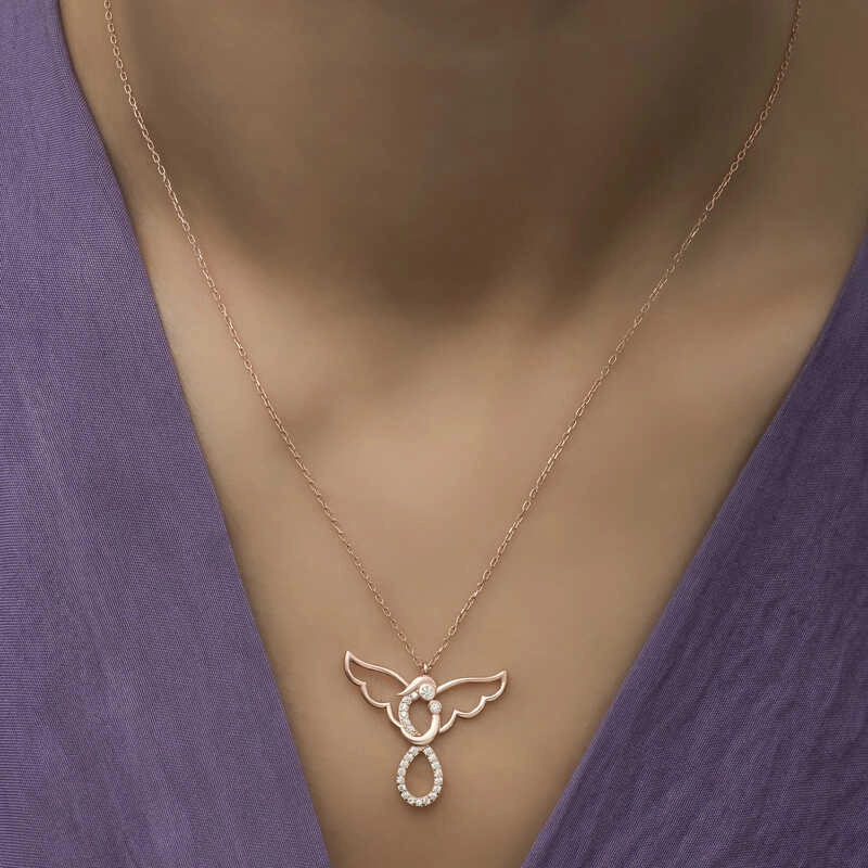 925 Ayar Gümüş Rose Melek Anne Ve Çocuk Kolye