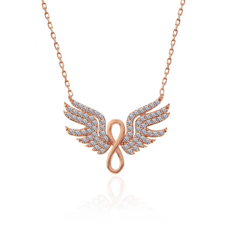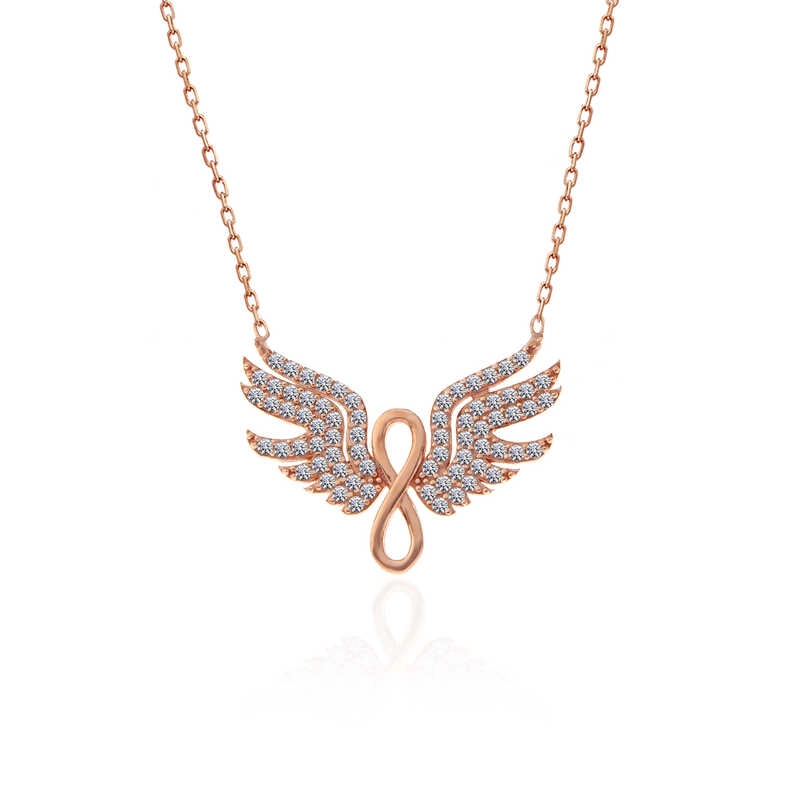 925 Ayar Gümüş Rose Melek Kanadı Sonsuzluk Kadın Kolye