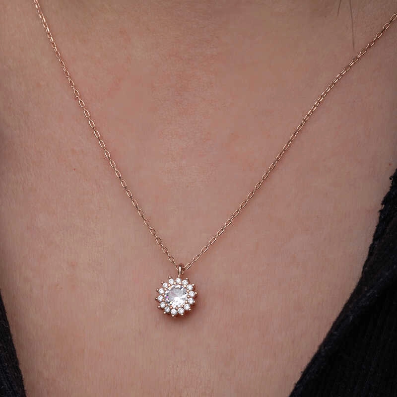 925 Ayar Gümüş Rose Minimal Yuvarlak Anturaj Kadın Kolye