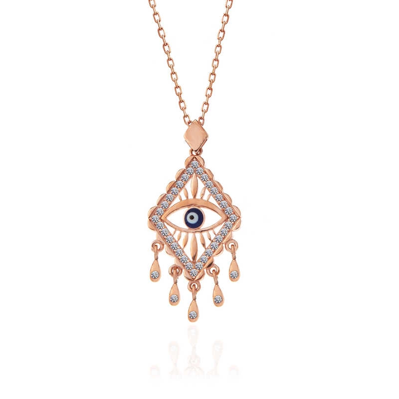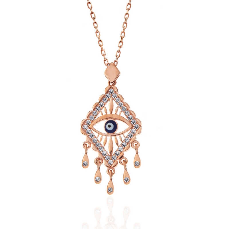 925 Ayar Gümüş Rose Nazarlı Göz Kolye