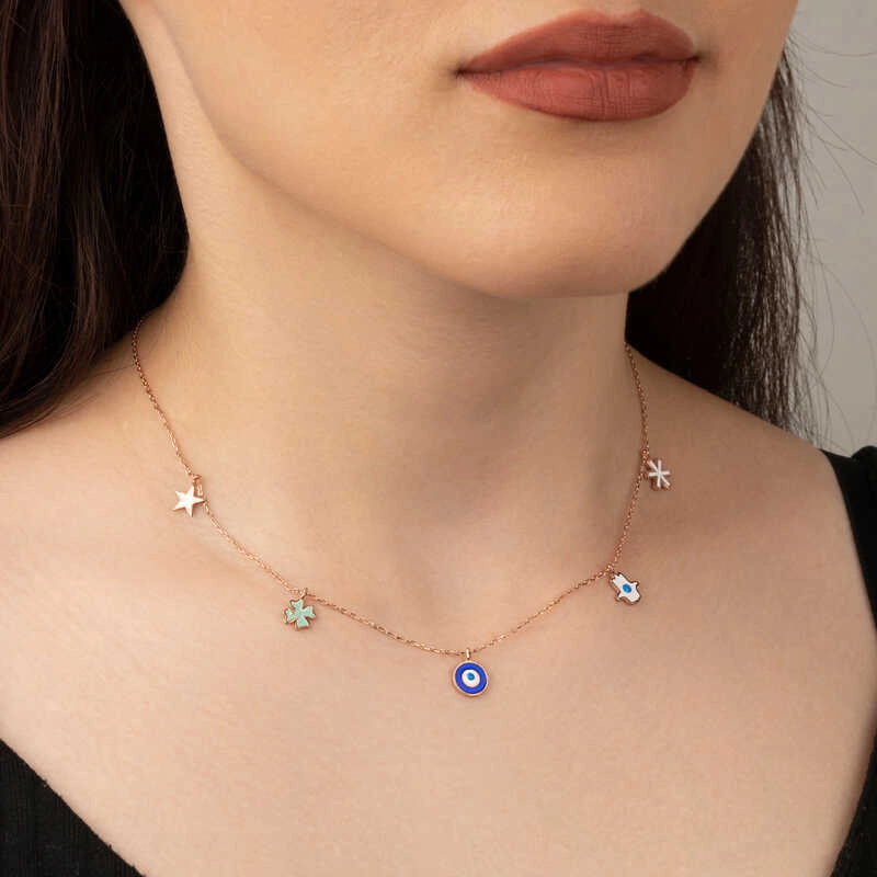 925 Ayar Gümüş Rose Nazarlı Şans Kadın Kolye