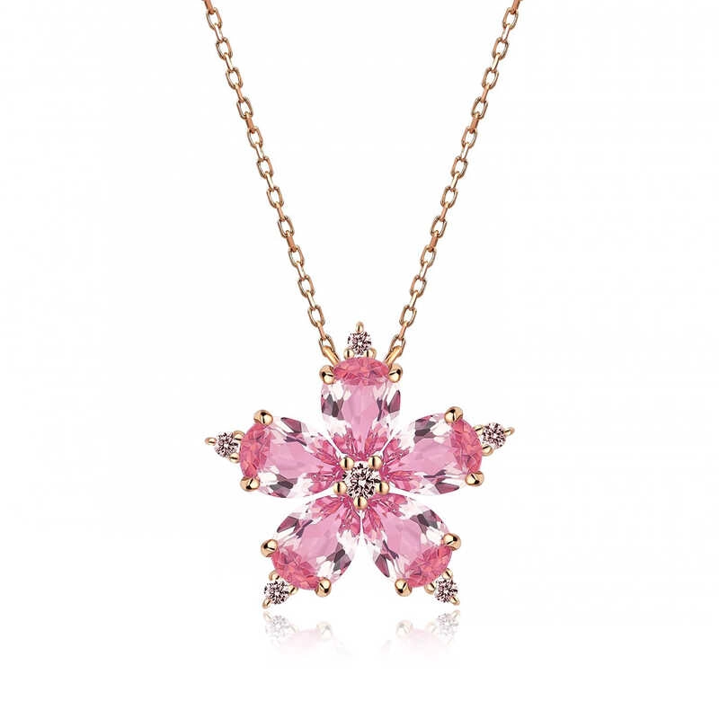 925 Ayar Gümüş Rose Pembe Kamelya Çiçeği Kolye