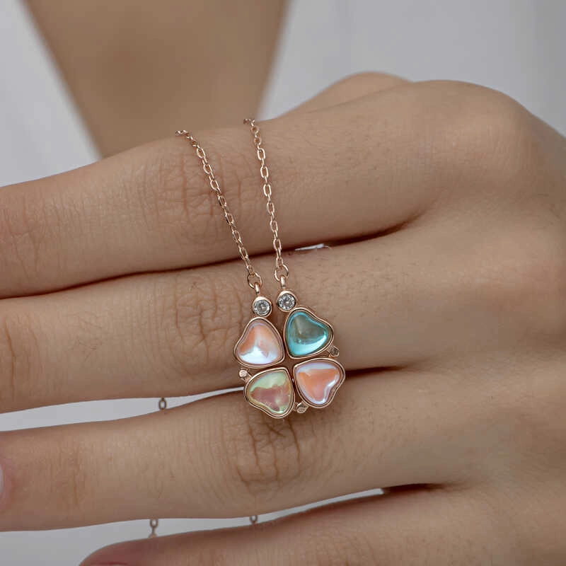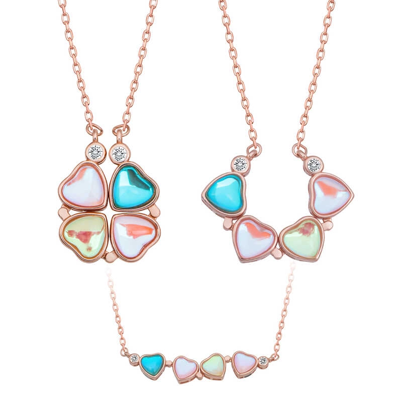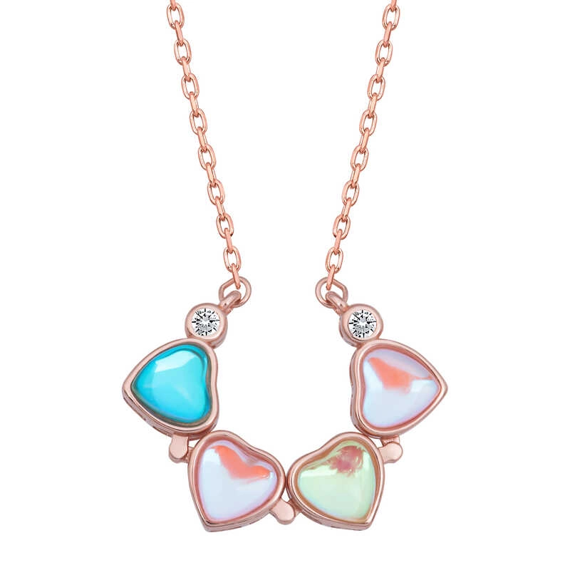 Gümüş Rose Renkli Açılabilen Yonca Kadın Kolye