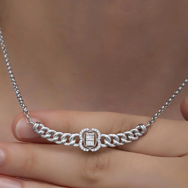 Gümüş Rose Siyah Taşlı KarTanesi Kadın Kolye