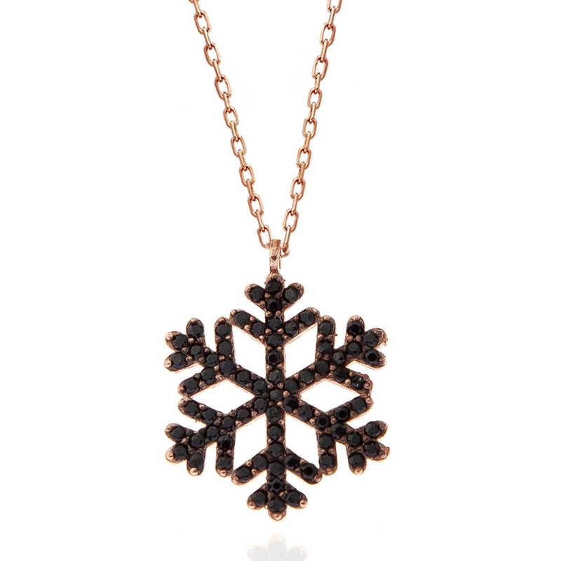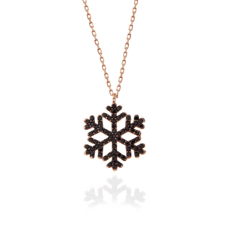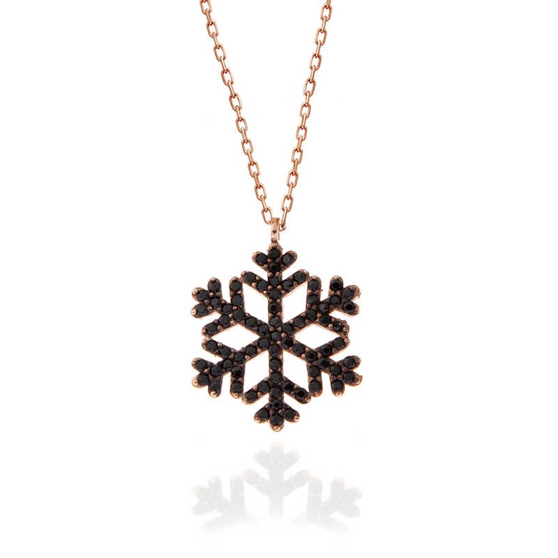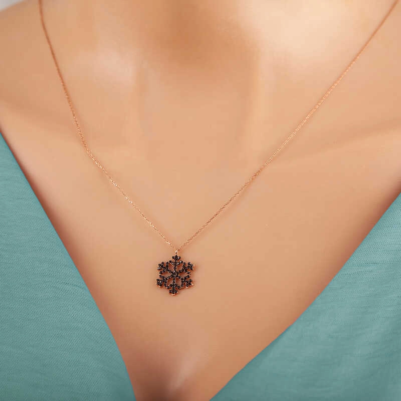 925 Ayar Gümüş Rose Siyah Taşlı Kar Tanesi Kadın Kolye