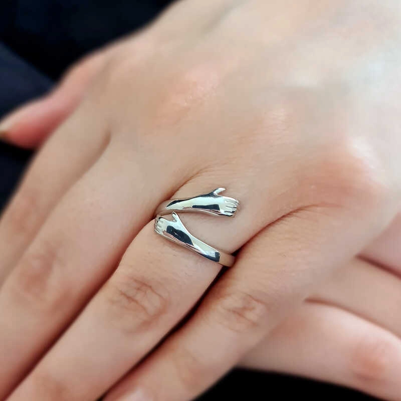 925 Ayar Gümüş Sarılan Eller Yüzük