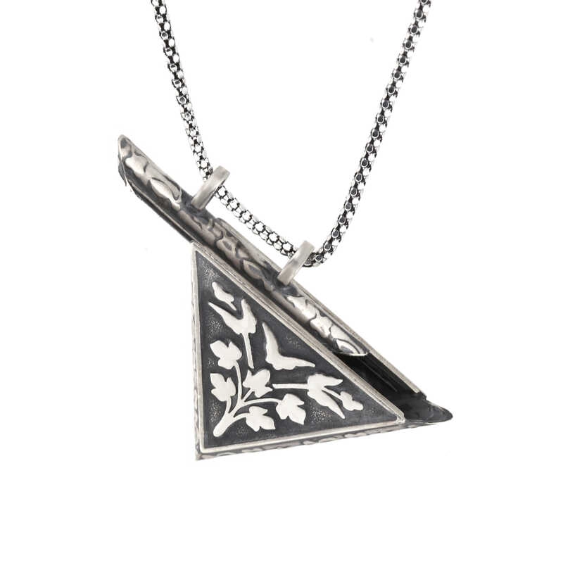 Gümüş Üçgen İçi Açılabilen Çiçek Muskalık Kolye