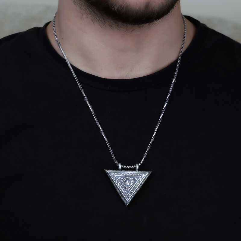 925 Ayar Gümüş Üçgen İçi Açılabilen Tuğra Muskalık Gümüş Kolye