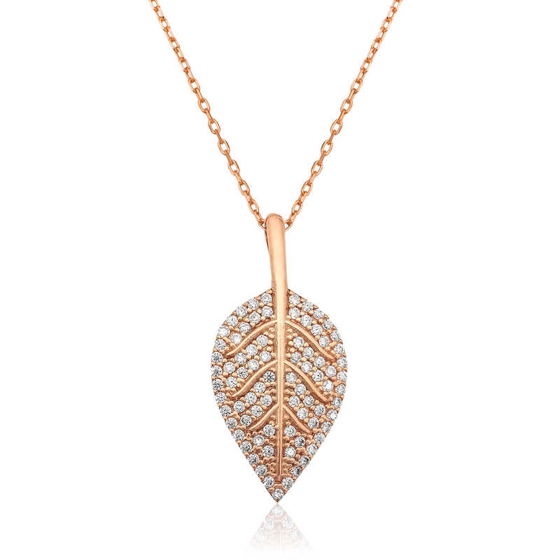 Yaprak deseni tabiattan almakta olduğu kuvveti, saygıyı ve zarafeti simgeler. ''Güçlüyüm ve yeniden doğmayı bilirim'' imajı çizmektedir ve evrene olan saygıyı belirtmektedir. Çiçekler ve bununla birlikte yapraklar, insanoğluna tabiatın verdiği en güzel hediyelerdendir. Doğanın verdiği bu bereketli hediyeyi sevdiklerinizle paylaşmaya ne dersiniz? Gümüş yaprak kolye sevdiklerinizin teninde hayat bulsun. Yaprak kolye; 925 ayar gümüşten imal edilmiştir. Gümüş üzerine rose altın kaplama yapılmıştır. Rose altın kaplama yapılan ürünler parlaklığını uzun süre muhafaza eder, gümüşü pembe renge çevirir ve oksitlenmeyi geciktirir. Diğer gümüş kolyelerde olduğu gibi gümüş yaprak kolye de tamamı el emeği ile üretilmiştir. Üzerinde bulunan taşlar zirkondur. Gümüş ve değerli taşlar nedeniyle belirtilen ortalama ürün ağırlığında ± %10 sapma olabilmektedir.